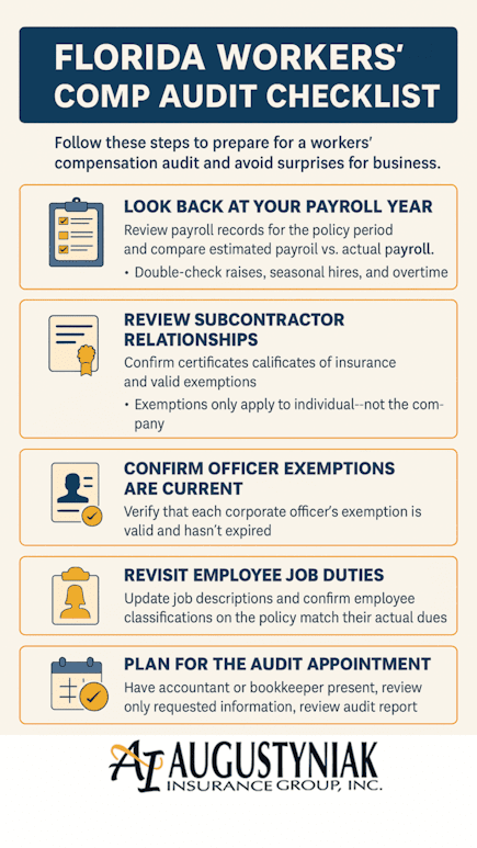Introduction -- Florida Workers' Comp Audit Checklist - Getting notice of a Florida workers’ comp audit can feel stressful-but it doesn’t have to be. If you understand what the auditor is looking for, you can prepare...